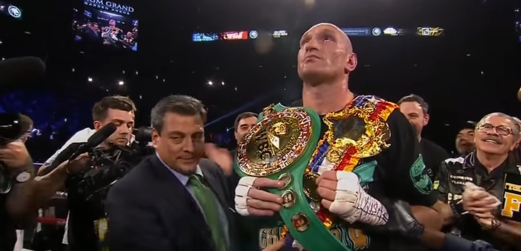 British boxer Tyson Fury thoroughly dominated American Deontay Wilder throughout seven, bloody rounds, eventually taking the WBC heavyweight title by TKO, but not before appearing to bizarrely lick blood off of his wounded opponent’s neck during a clinch.