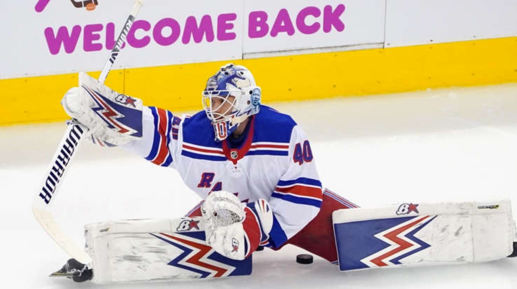 Henrik Lundqvist made 34 saves in his 128th consecutive postseason start for the Rangers. Rookie goalie Igor Shesterkin was expected to start before being ruled out Friday night.