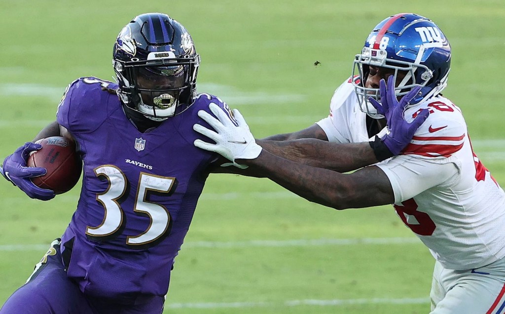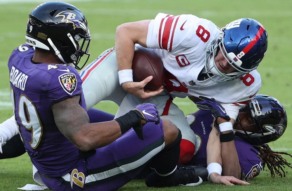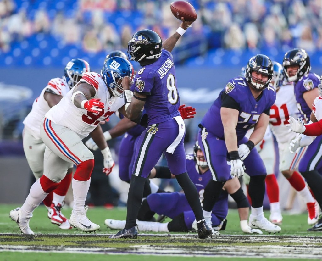 Baltimore controlled the game on the ground, thrashing the Giants’ run defense to the tune of 249 yards on 40 rushing plays. And it wasn’t all Lamar Jackson on scrambles, either. The Ravens had three separate players, Gus Edwards, Jackson, and J.K. Dobbins, each rushing for over 75 yards.