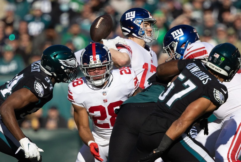 The Giants’ offense was abysmal against the Eagles, starting with QB Jake Fromm in his three quarters of action before being benched for Mike Glennon.