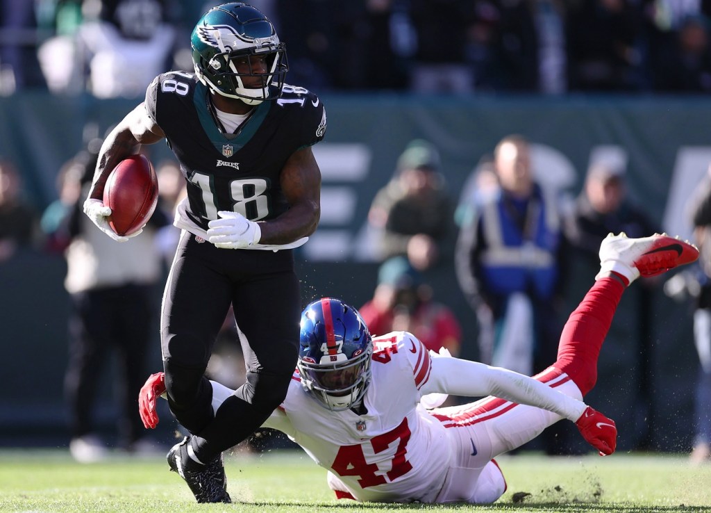 Philadelphia and New York were tied 3-3 at halftime as the Eagles struggled to move the ball in the first half, but the Eagles capitalized off plenty of Giants miscues in the second half to make it a rout. The Eagles scored on four consecutive possessions to open the second half, highlighted by a 3-yard touchdown run by Boston Scott to give Philadelphia the lead for good at 10-3 and a 4-yard catch for DeVonta Smith that put Philadelphia up 20-3 and in full command of the game.