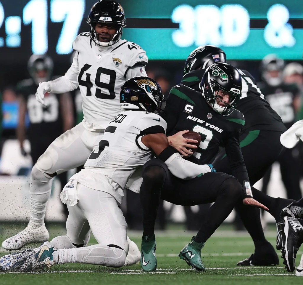 In the New York Jets’ 15th game of the 2022 season, on a rainy, windswept, stormy night in East Rutherford, New Jersey, the Jets were defeated by the Jacksonville Jaguars, 19 – 3, all but ending any Jets playoff hopes.