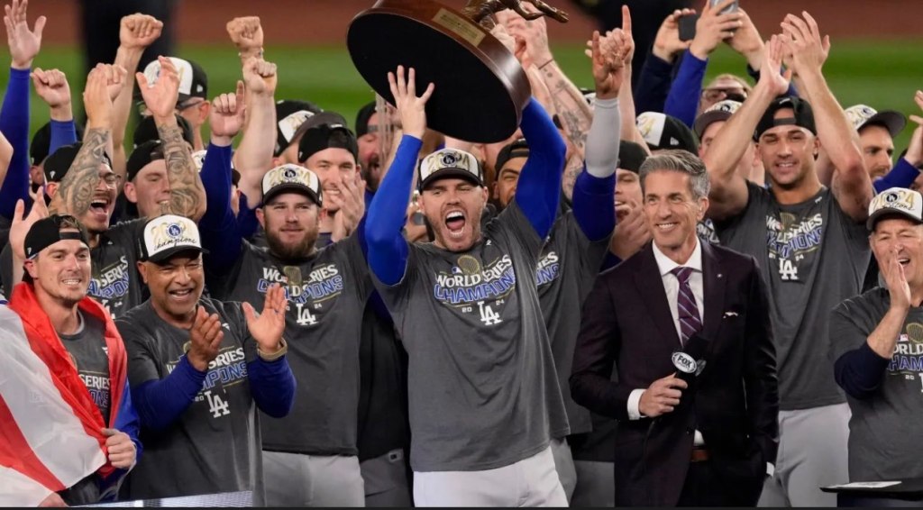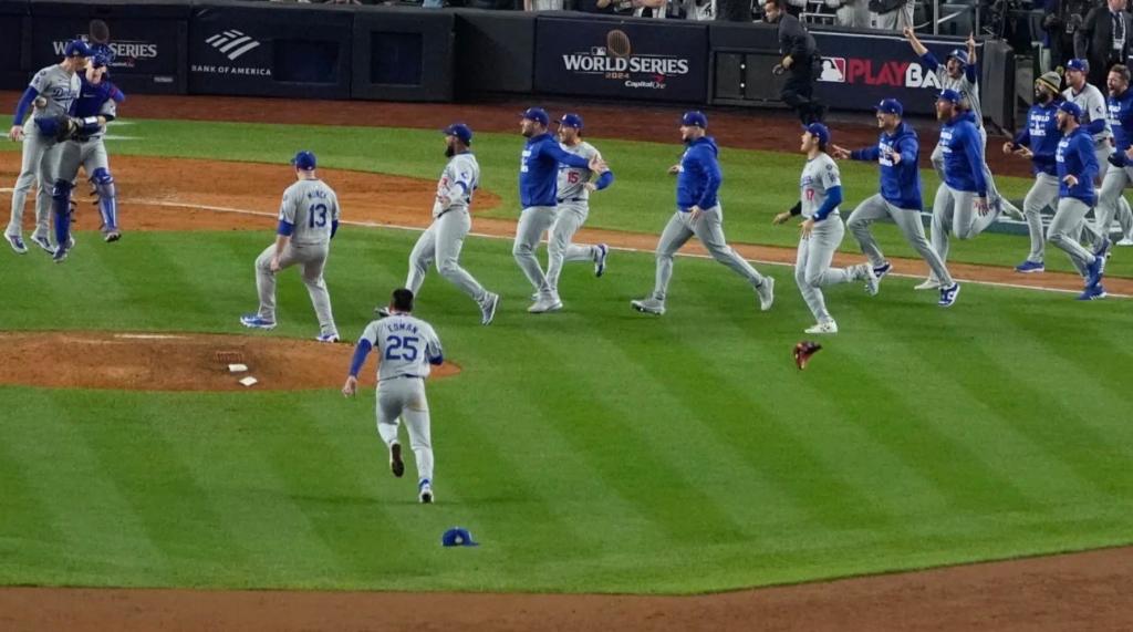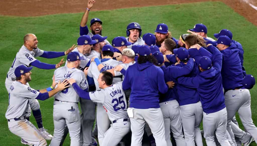 Entering Wednesday with a 3-1 series lead but perhaps more than a few nerves after a rough loss to the New York Yankees in Game 4, the Dodgers fell behind 5-0 before a chaotic comeback put the Commissioner’s Trophy in their hands with a 7-6 victory.