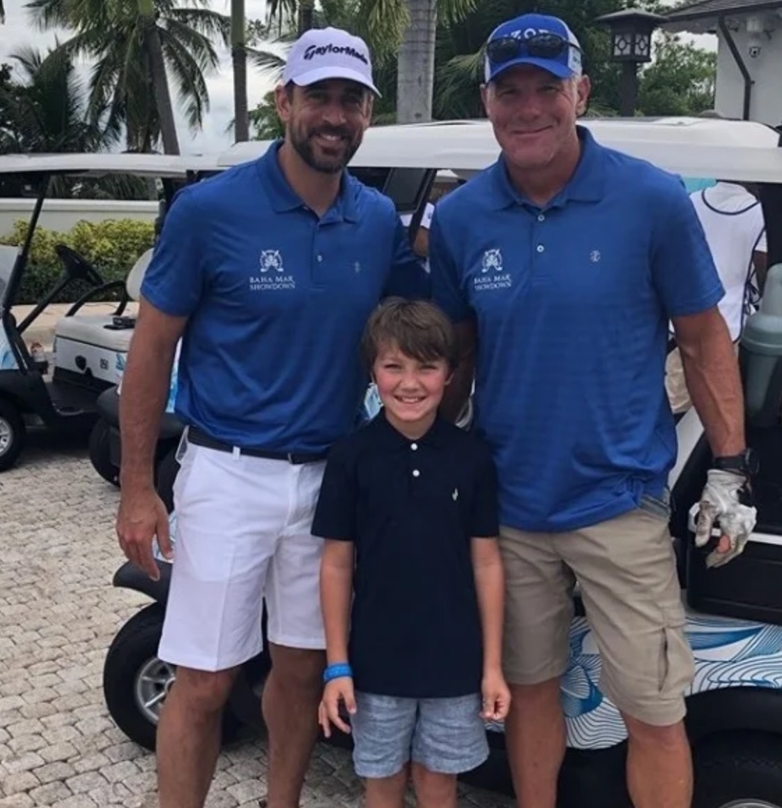 “My grandson Parker said ‘my favorite QB and favorite retired QB [laughing emoji] together for a picture how cool’ fun day of golf thanks 12,” Favre wrote, referring to Rodgers’ jersey number.