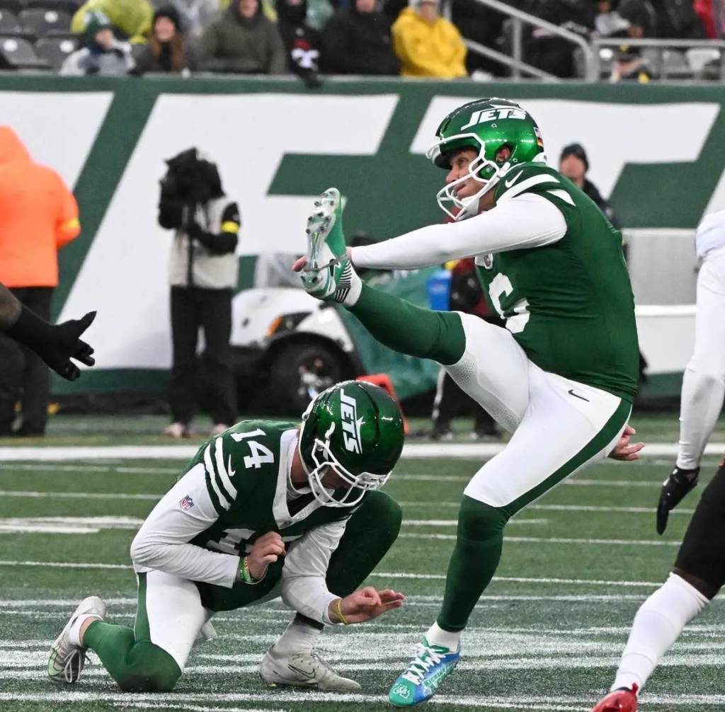 In a game between two struggling teams that was anything but pretty, Folk’s kick was also far from it. But in tough conditions, the 41-year-old got just enough on the football and was mobbed at midfield by his teammates as the Jets fans in a drenched and half-empty MetLife Stadium went wild.