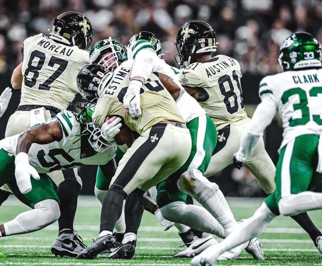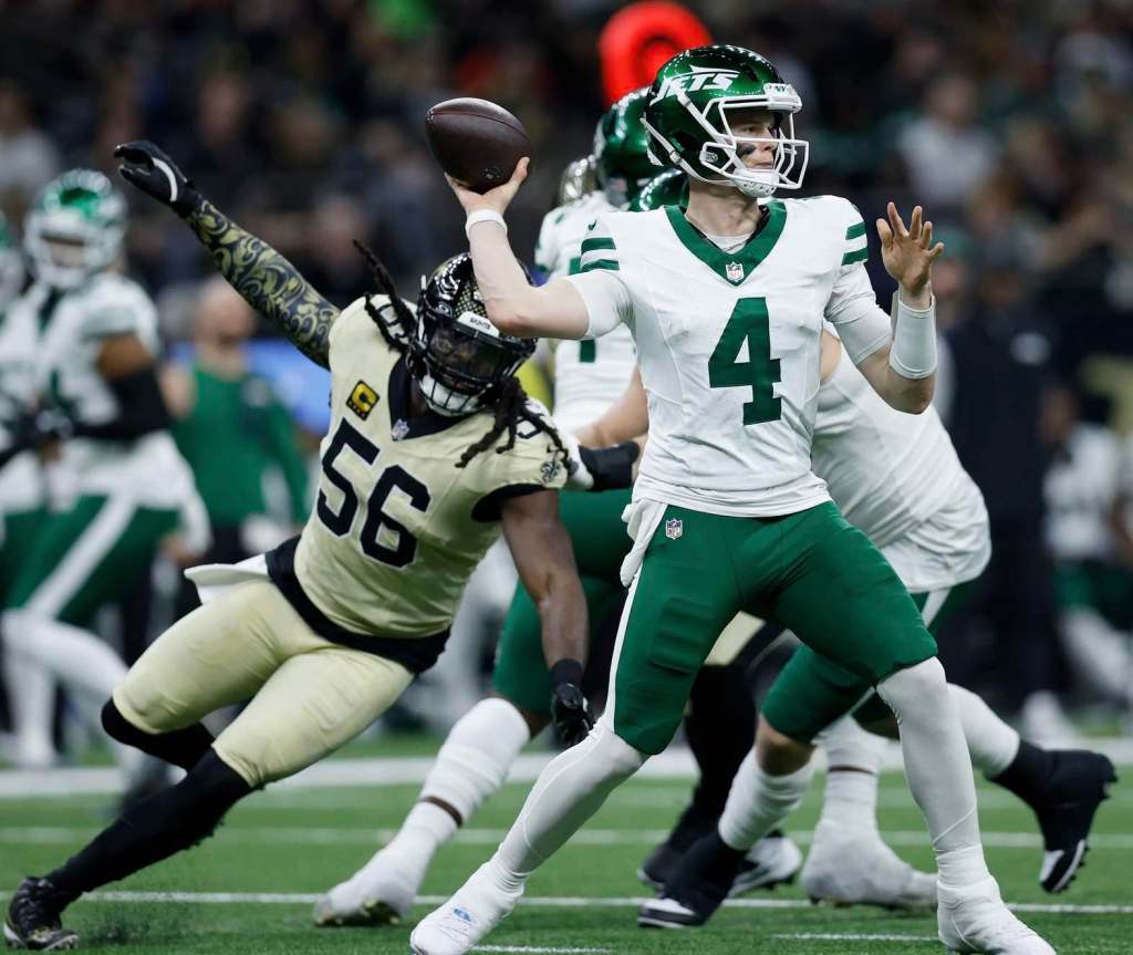 Saints rookie quarterback Tyler Shough carved up the Jets defense finishing 32 for 49 with 308 yards and a touchdown pass.