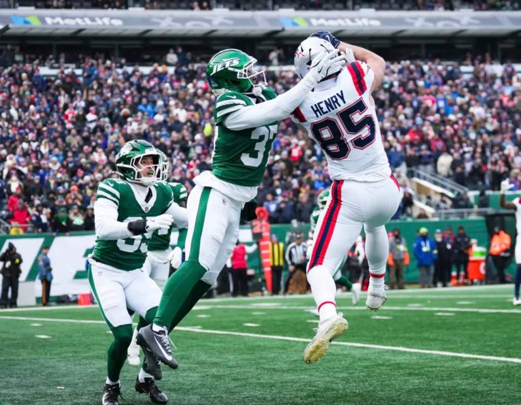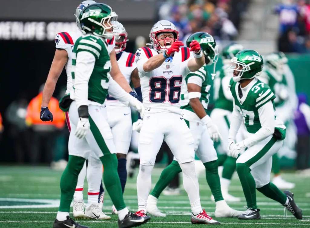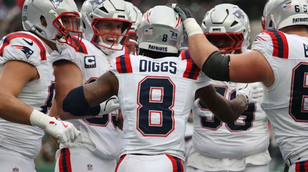 New England Patriots quarterback Drake Maye set a career high throwing five passing touchdowns against the New York Jets in a nearly perfect performance.