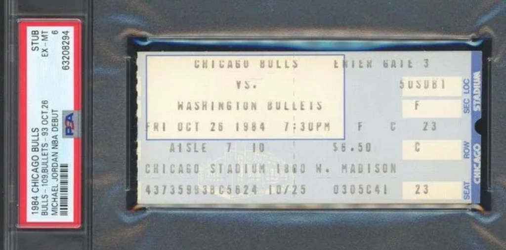 A ticket stub from Michael Jordan’s NBA debut sold for $264,000 at auction, breaking the record for most expensive collectible sports ticket ever sold.