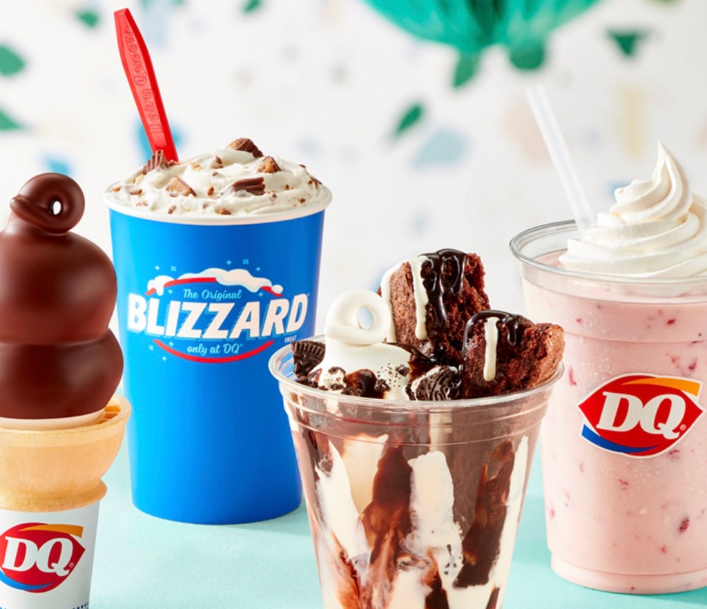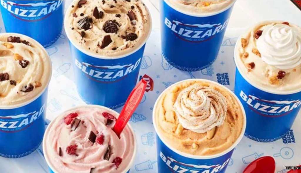 Reese’s Peanut Butter Cup Pie Blizzard Treat: Reese’s Peanut Butter Cups and graham blended with DQ soft serve and garnished with whipped topping.